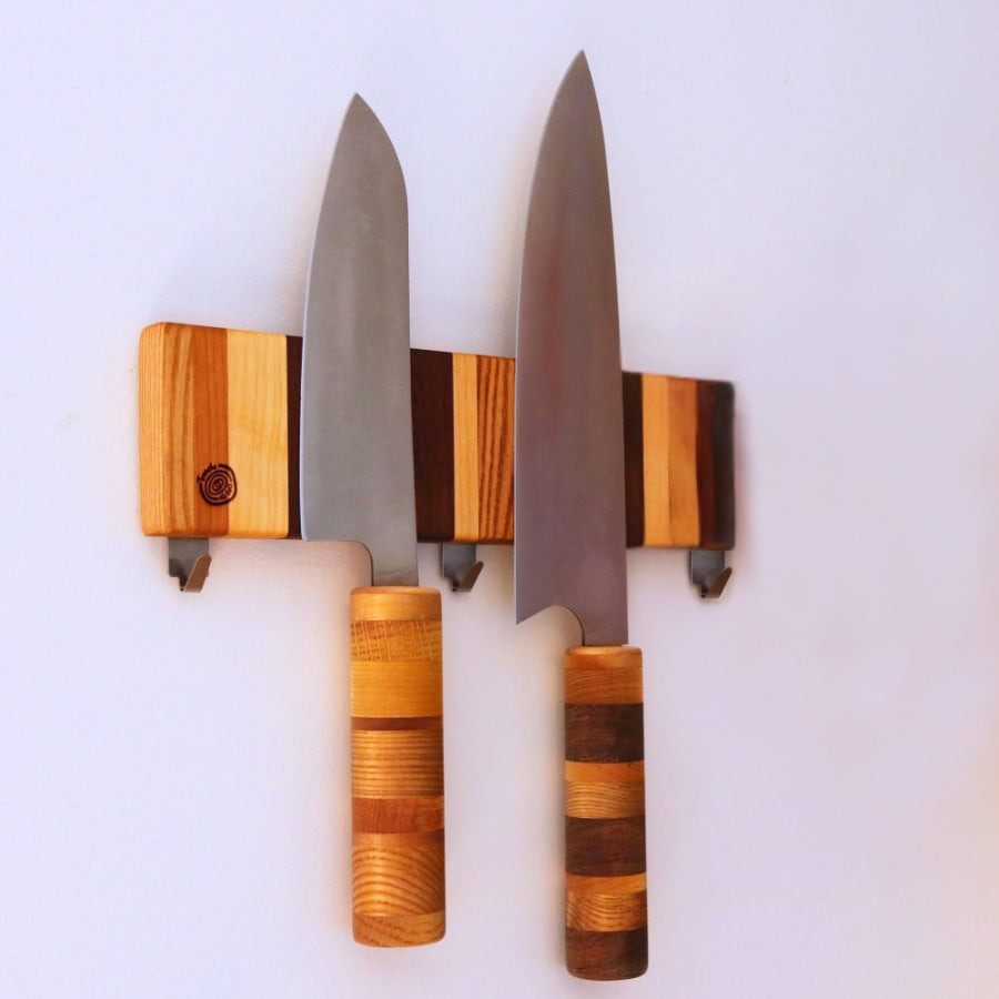 • Une puissante bande magnétique pour retenir les couteaux, ciseaux ou autres ustensiles.